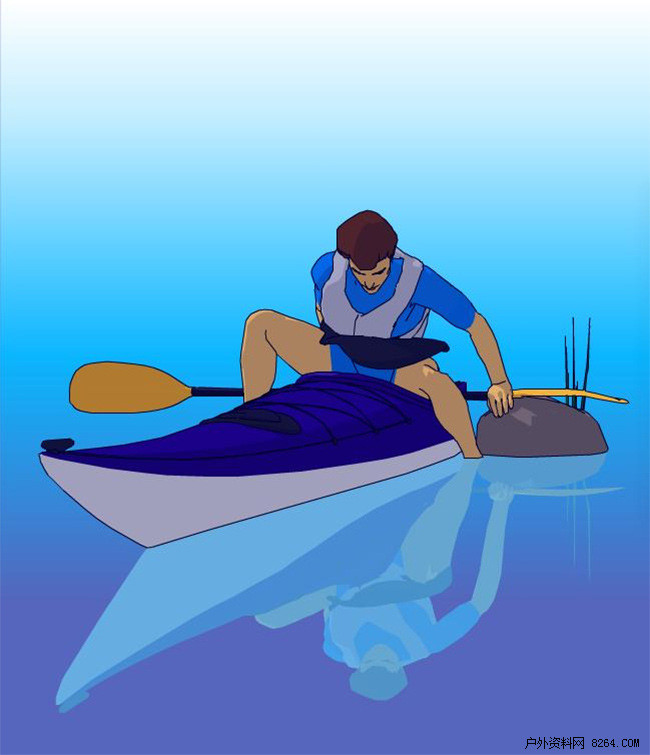 首先,检查救生衣是否穿戴好,如果使用防水裙,可以先卷起,以免入舱时坐在裙上,将船桨放在伸手可及的地方。