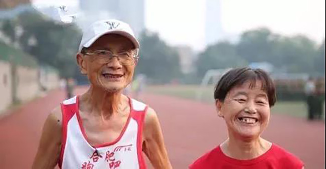 今年北马终点,一对金婚夫妇相互拥抱,庆祝完赛,42.195公里,北马记忆他们的爱情。80岁的胡应福和71岁的王章敏夫妇从28岁就开始跑步,是目前全国马拉松跑者夫妻中年龄最大的一对。